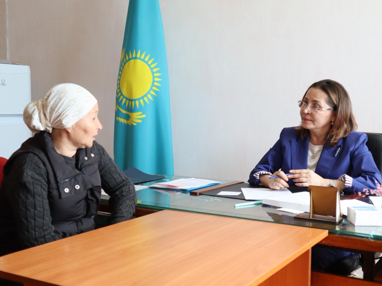 В рамках рабочей поездки в сельский округ Кенкияк Темирского района руководитель управления координации занятости и социальных программ Актюбинской области Ляззат Уразбаева провела личный прием граждан, в ходе которого приняла более 20 человек.
