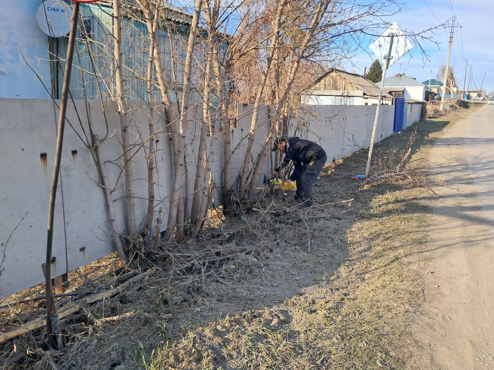 Вчера, 8 апреля, в поселке провели спил деревьев, кустарников вдоль дорог по улицам Жукова и Центральная.
