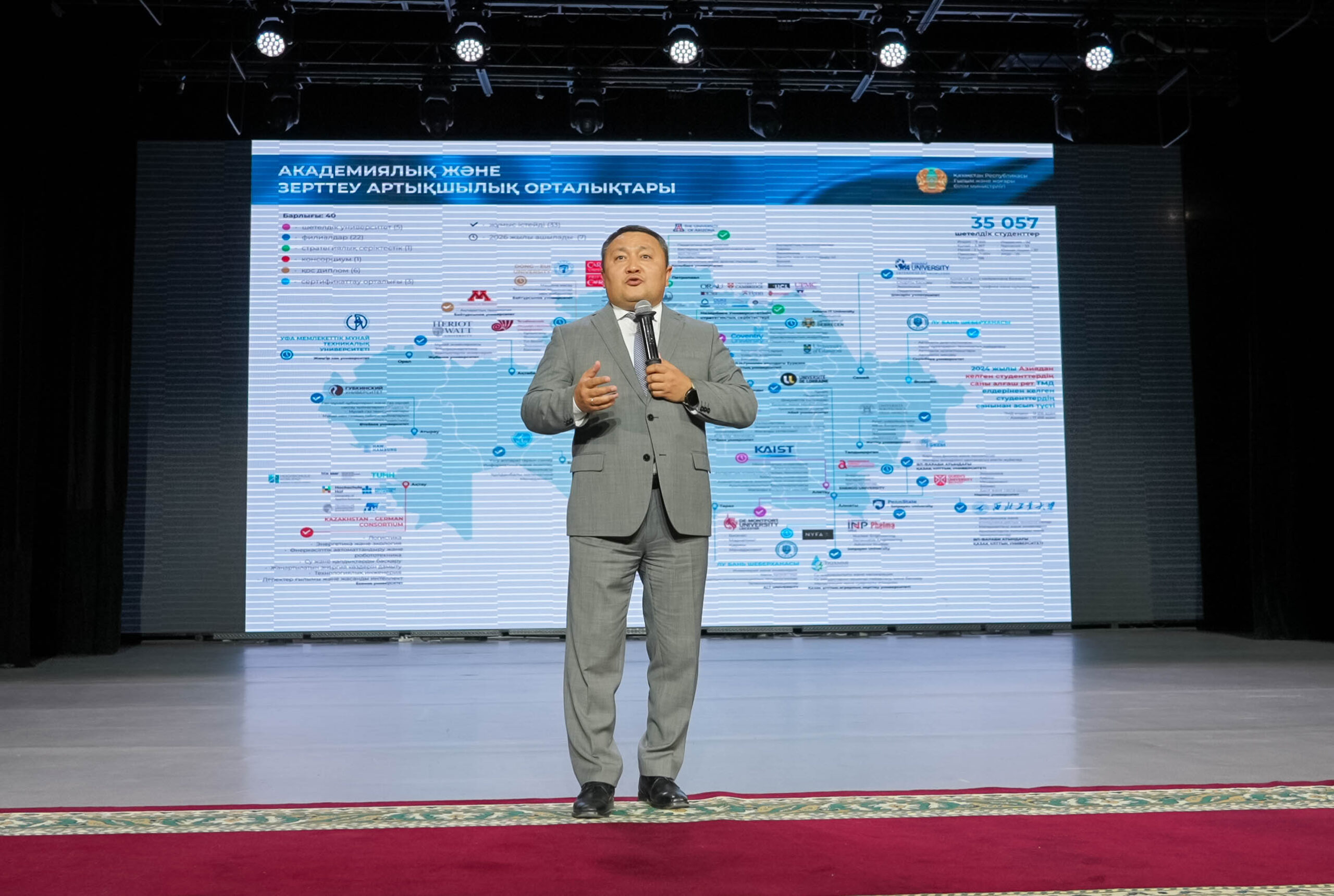 В ходе торжественного открытия выступили руководитель Управления образования города Астаны Касымхан Сенгазыев и советник министра науки и высшего образования РК Руслан Емелбаев, подчеркнув важность получения качественного образования для молодежи. Также для школьников была организована познавательная программа: педагог-профориентолог Айдос Жуманазар, эксперт по ЕНТ Фархат Султабаев и эксперт в сфере образования Оразбек Апсаттар дали абитуриентам рекомендации по выбору профессии и поступлению в вуз.