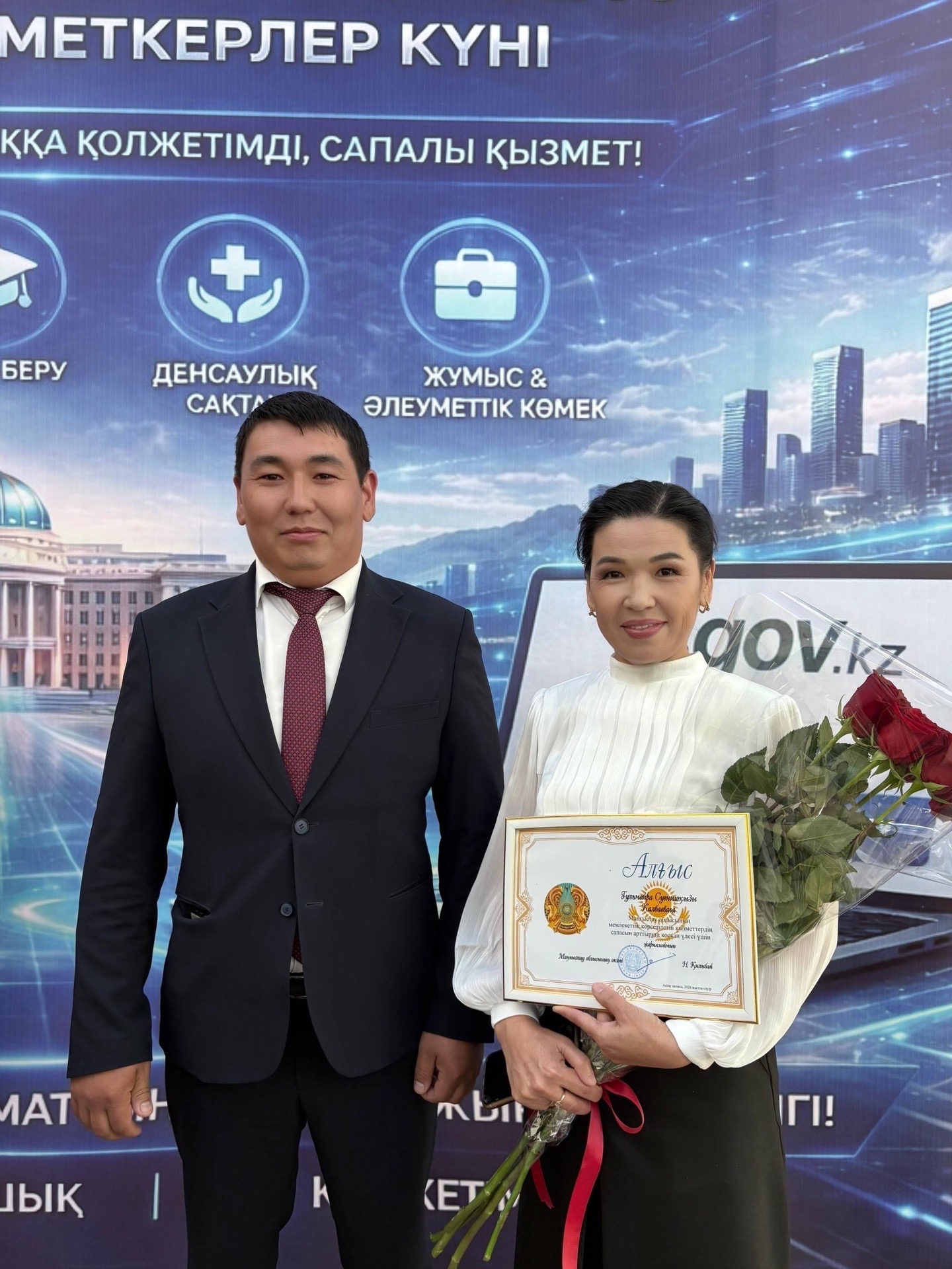 7 апреля ко Дню работников в сфере оказания государственных услуг награждена Калбаева Г.