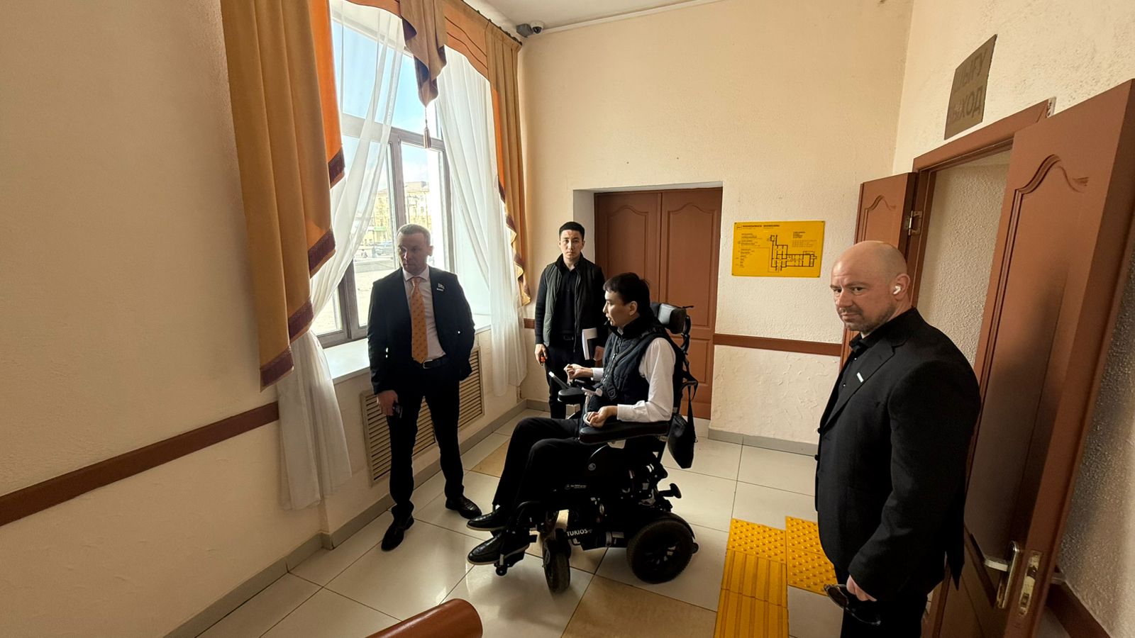 Отделом по контролю в сфере социальной защиты населения Департамента регулирования и контроля в сфере социальной защиты населения по Карагандинской области совместно с депутатами партии «AMANAT» и руководителем Центра социальной адаптации лиц с инвалидностью города Караганды ООИ «Qamqor plus» Сундиталиевым Н.А. 6 апреля текущего года проведен мониторинг таких социальных объектов, как кинотеатр «Сарыжайлау», главное отделение «Казпочта», кинотеатр «Kinoplexx» в ТД «Таир», с целью разъяснения требований доступности объектов для лиц с инвалидностью.