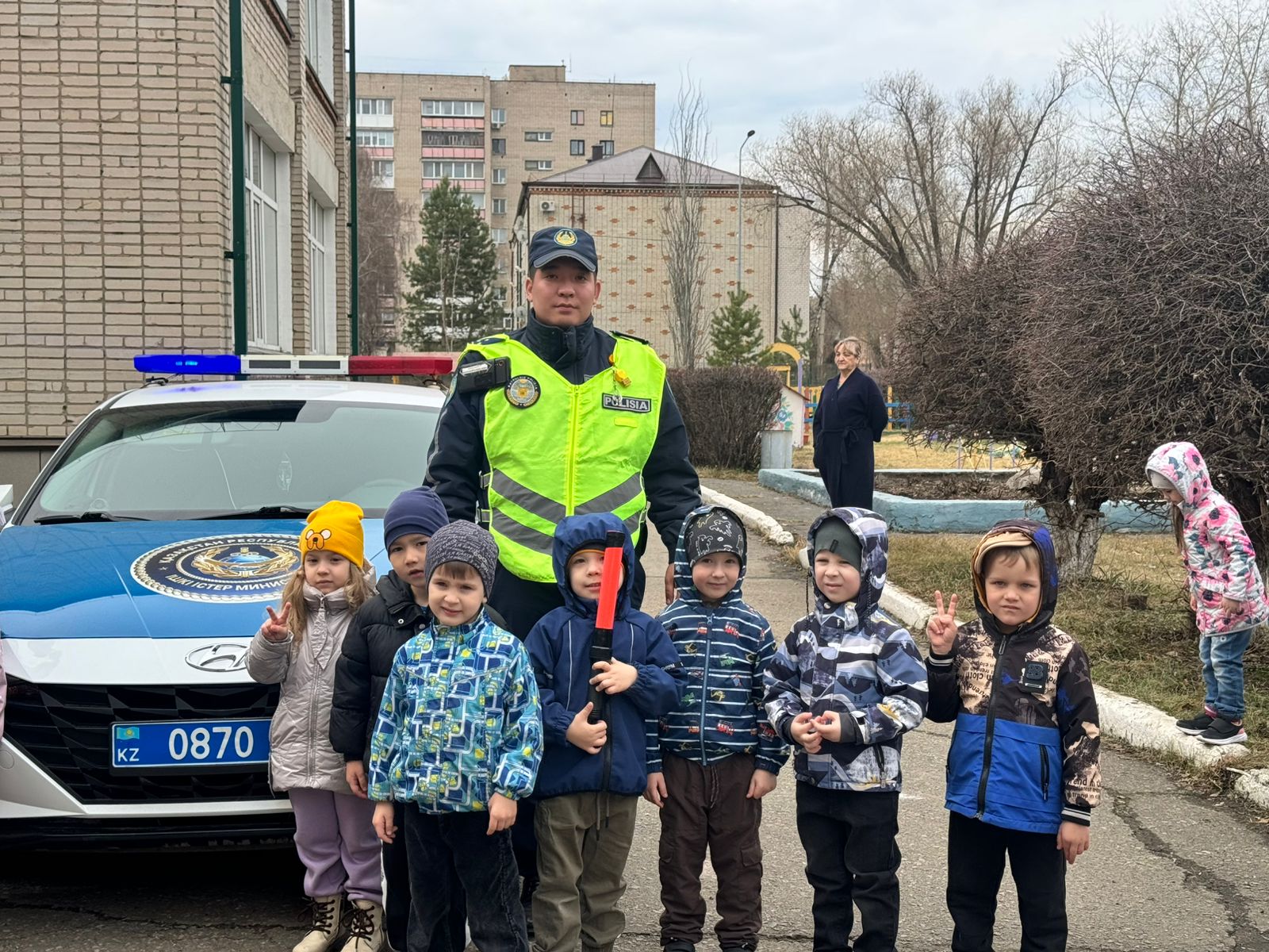 Наибольший интерес у детей вызвало общение со старшим лейтенантом полиции Дамиром Рахимовым. Личное обаяние и понимание того, что дети лучше всего усваивают знания через игру, позволили ему доступно рассказать малышам о безопасном поведении на дороге.