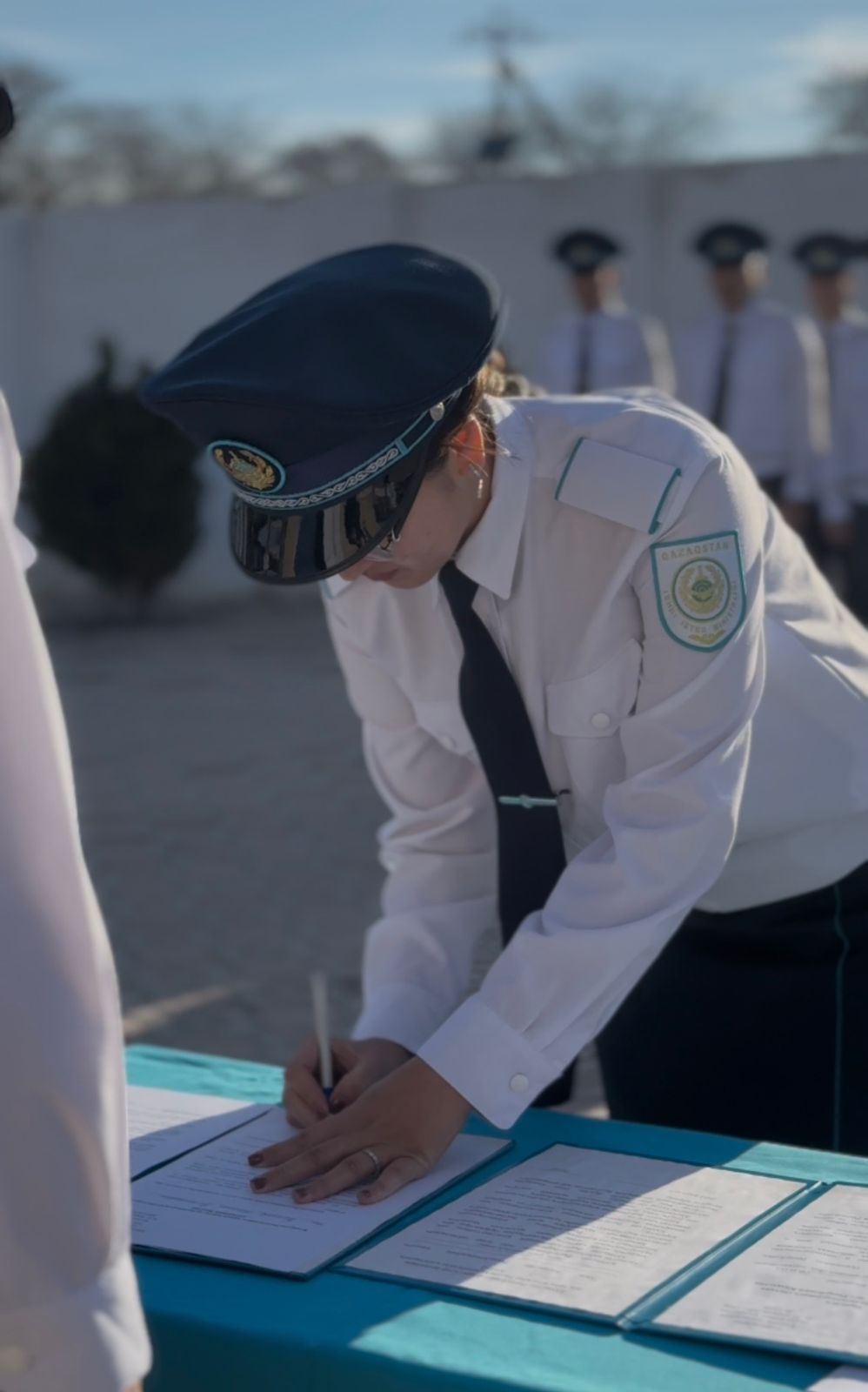 В торжественной церемонии принял участие заместитель начальника Департамента УИС по Мангистауской области, полковник юстиции Ильяс Кирбасов. Он поздравил молодых сотрудников с этим значимым событием и отметил, что в службе особую роль играют дисциплина, ответственность и профессиональная честность.