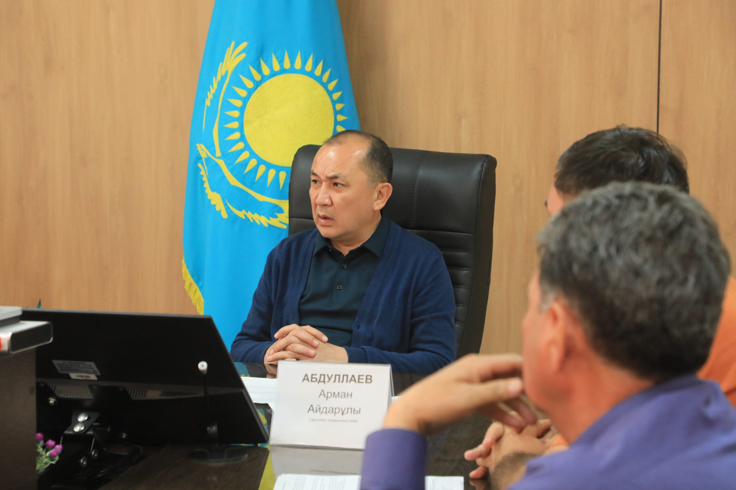 С участием акима Сарыагашского района Арман Абдуллаев состоялся технический совет, посвящённый ходу строительных работ по обеспечению питьевой водой населённого пункта Ақжар.