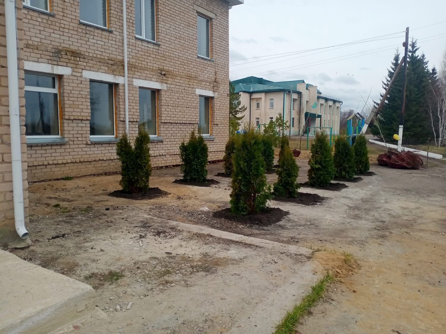 Возле здания будущего торгового центра были высажены саженцы пирамидального тополя и туи, приобретенные за счет собственных средств. Проведённая посадка деревьев направлена на улучшение экологической обстановки и благоустройство населённого пункта.