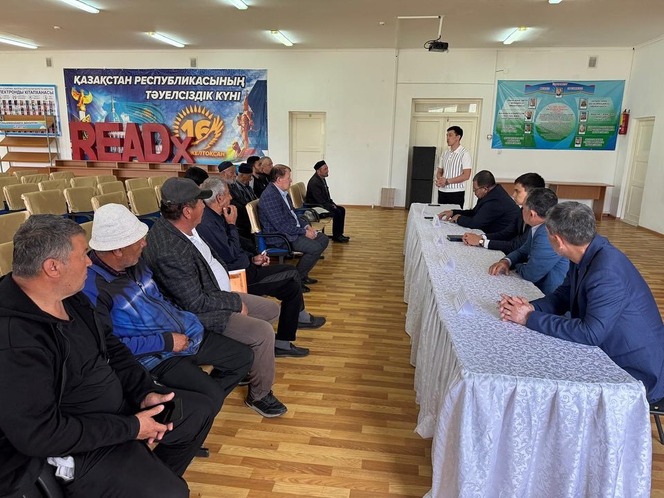 Сегодня в Шымкенте члены информационно-разъяснительной группы встретились с жителями жилого массива Кызылсу Каратауского района, подробно рассказали о Конституции, принятой на республиканском референдуме 15 марта, рассказали о главном правовом документе страны.