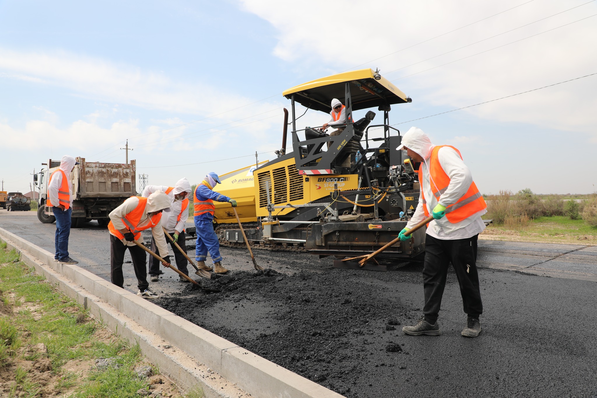 В Мактааральском районе Туркестанской области активно ведутся работы по среднему ремонту казахстанского участка автомобильной дороги международного и межрегионального значения «М-39» Ташкент–Термез.