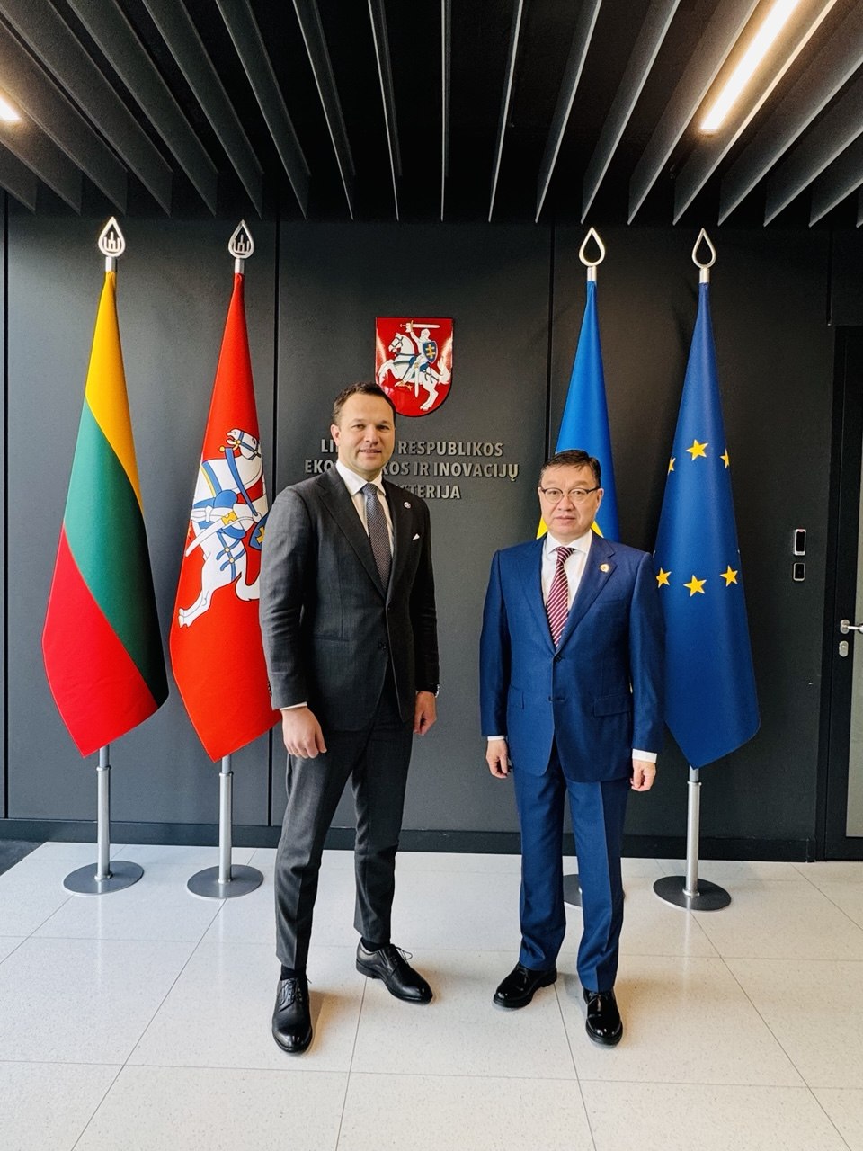 Вильнюс, 13 апреля 2026 года – Посол Казахстана Т.Уразаев провёл встречу с Министром экономики и инноваций Литвы Э. Грикшасом, являющимся также сопредседателем двусторонней межправительственной комиссии по торгово-экономическому сотрудничеству. В беседе стороны обсудили широкий спектр направлений сотрудничества.