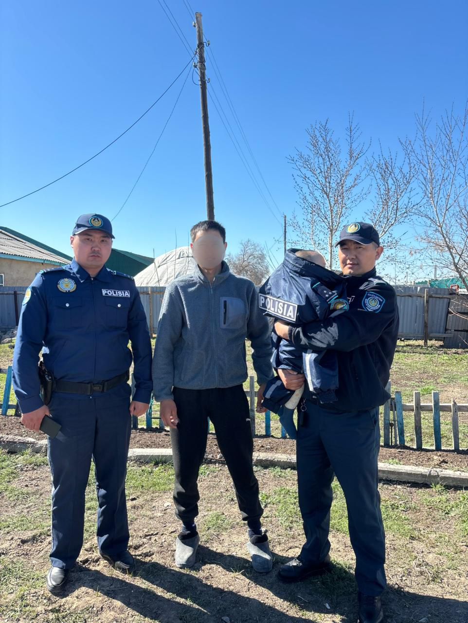 14 апреля 2026 года около 11:00 в селе Акжар участковый инспектор Диас Жумадилов и инспектор патрульной полиции Нурасыл Кабылкаков обнаружили двухлетнего мальчика. Малыш был один, босиком, в одной футболке и подгузнике, несмотря на прохладную погоду. Рядом находился опасный объект — глубокий уличный туалет.