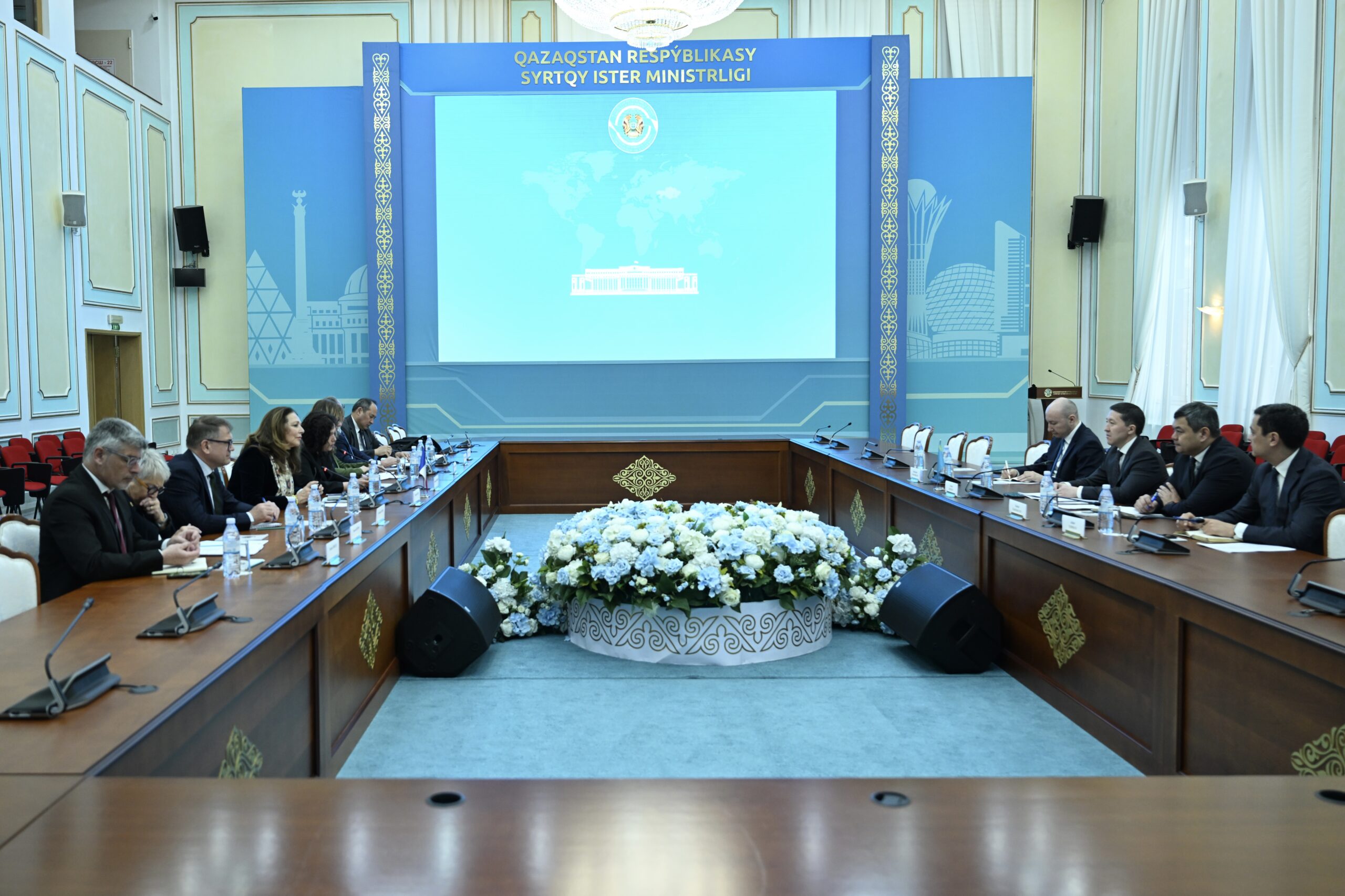 Астана, 13 апреля 2026 г. – Заместитель министра иностранных дел Республики Казахстан Арман Исетов провёл встречу с делегацией Комиссии по иностранным делам, обороне и вооруженным силам Сената Парламента Французской Республики во главе с Валери Буайе, членом группы дружбы «Франция – Центральная Азия» Сената Парламента Франции.