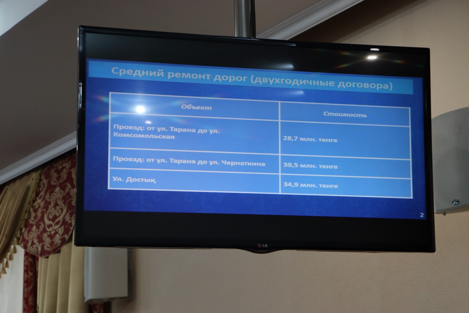 На сегодняшний день заключены переходящие двухгодичные договоры на средний ремонт трех участков: — проезд от улицы Тарана до улицы Комсомольская — 28,7 млн тенге;