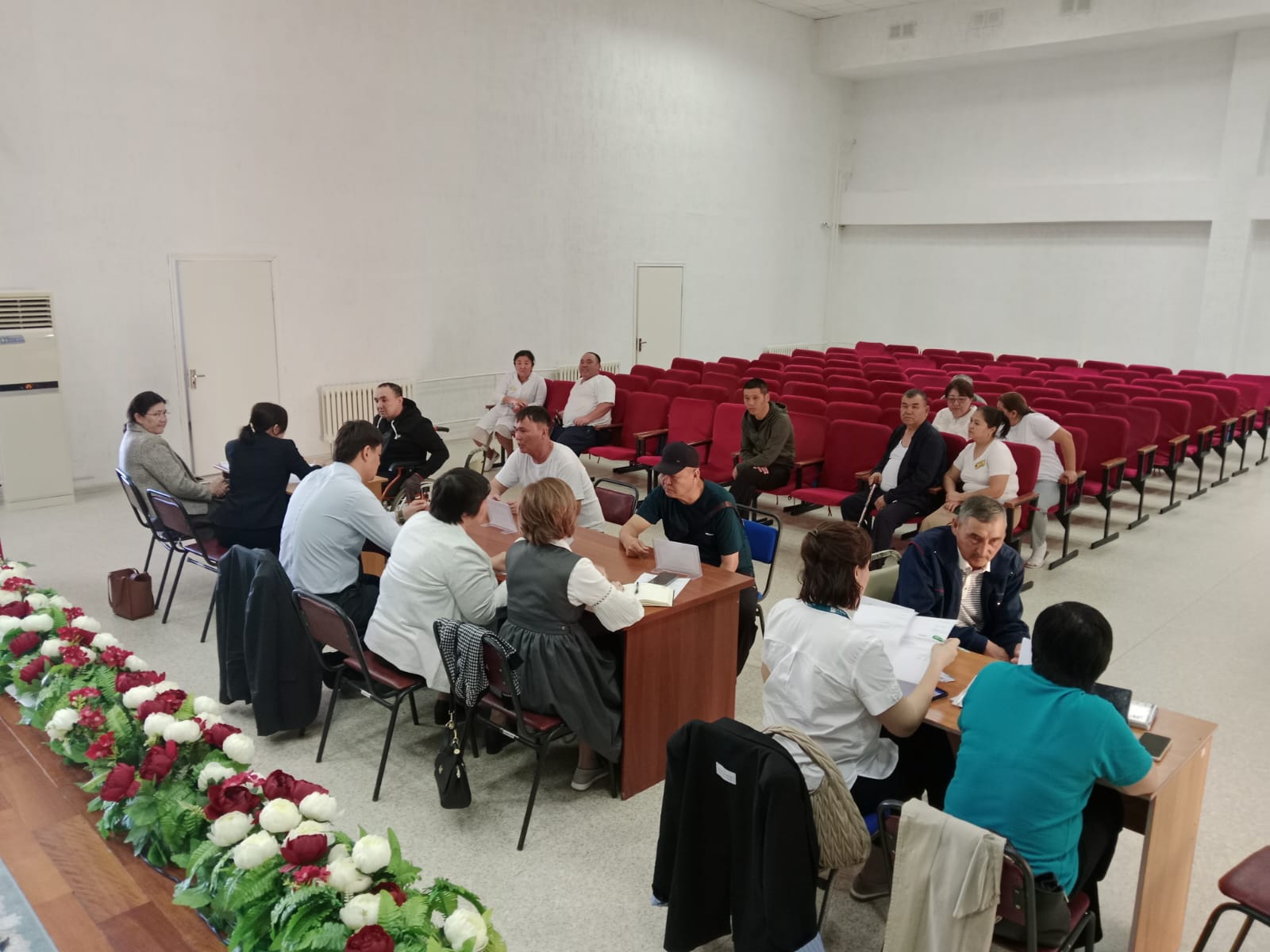Главным специалистам отдела пенсионного и социального обеспечения Дуйсенбай С., главным специалистам отдела №3 медико-социальной экспертизы Байжигитовой Г., специалист отдела контроля в сфере социальной защиты населения Ситалиевой С., и руководителем отдела Управления координации занятости и социальных программ Кызылординской области Абдыкалыковой Г. 13.04.2026 г. провели встречу с получателями услуг и личный приём в «Реабилитационном центре для инвалидов в городе Кызылорда».