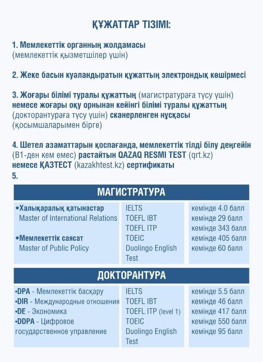 Прием документов на программы магистратуры и докторантуры осуществляется через информационную систему admission.apa.kz.