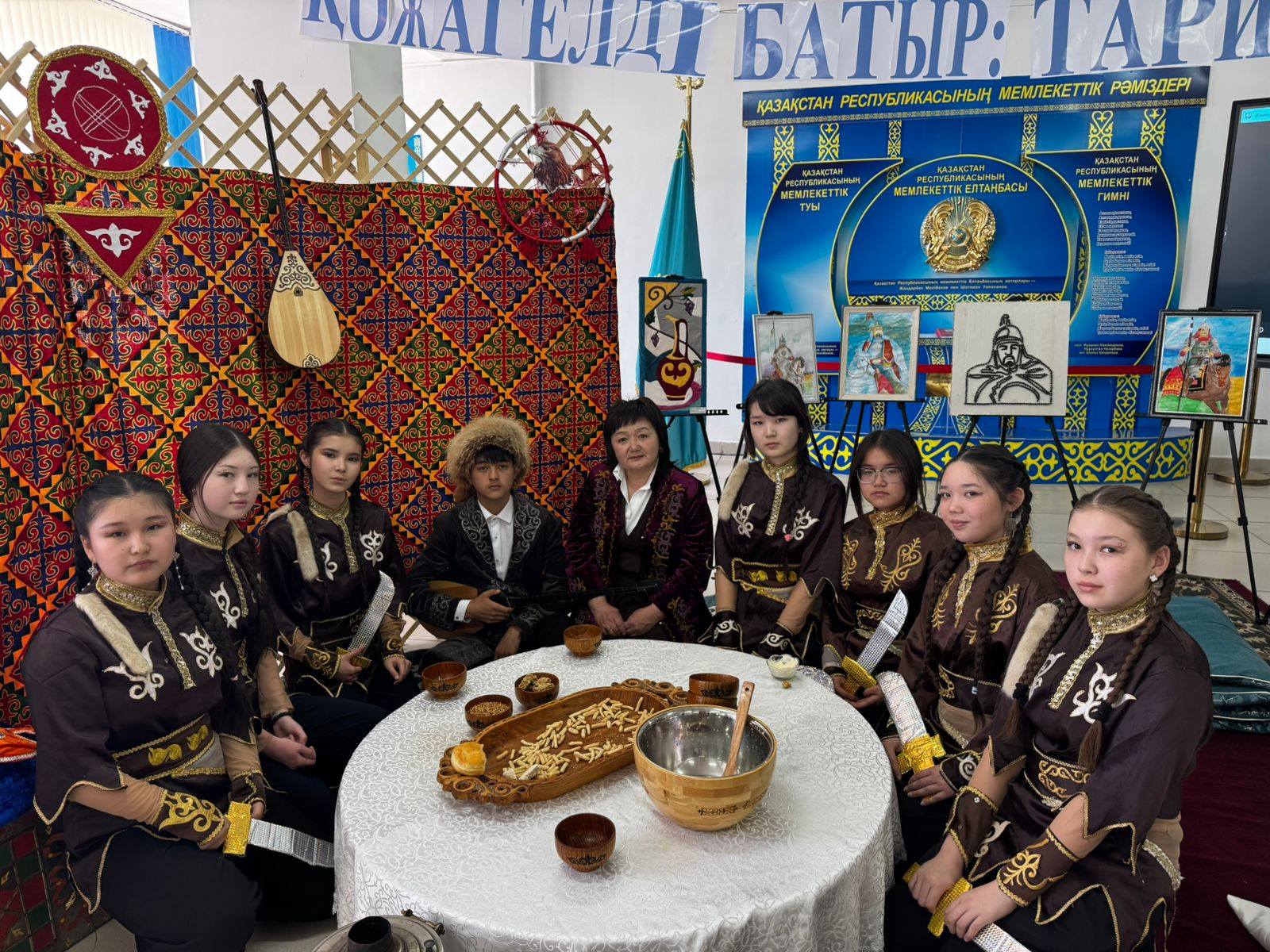 Также выставка юных художников на тему «Героическая личность – Қожагелді батыр» дополнила содержание вечера и продемонстрировала творческий потенциал учащихся.