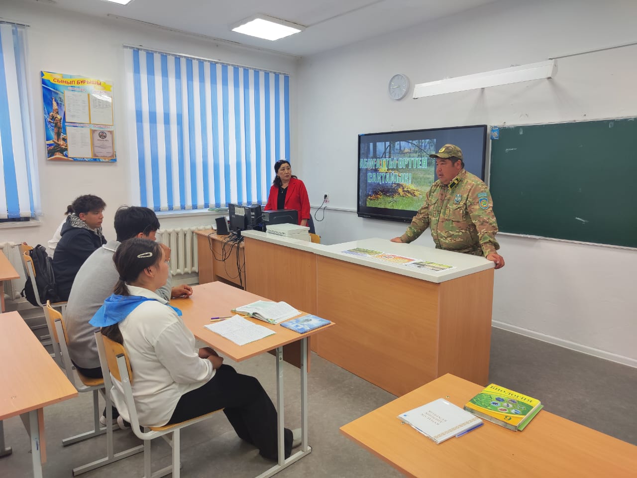 Инспекторы лесного хозяйства провели в Жанаталапской средней школе познавательную лекцию на тему пожарной безопасности