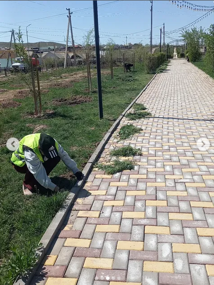 Работники биржы труда  проводят уборку и благоустройство аллеи. В рамках ежедневных работ проводится уборка территории от мусора, уход за деревьями, озеленение и поддержание общего порядка.