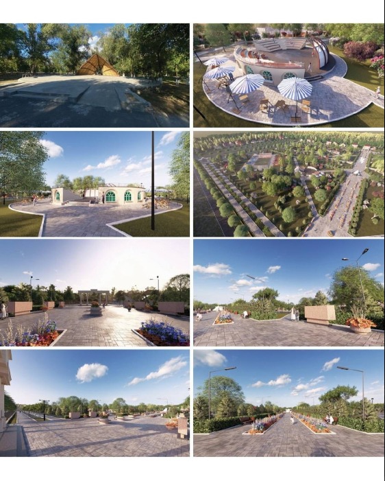 🔹 На территории парка высажено 1200 деревьев, из них 750 хвойных и 450 лиственных. В настоящее время ведутся разметочные работы для прокладки тротуаров. Старый амфитеатр будет капитально отремонтирован, в его нижней части разместят фуд-корт, который передадут частным предпринимателям для открытия объектов обслуживания. В восточной части парка будет построен фонтан и создан этноаул. В северной части появятся релакс-зоны, будут обновлены существующие игровые площадки и дополнительно построены скейт-парки.