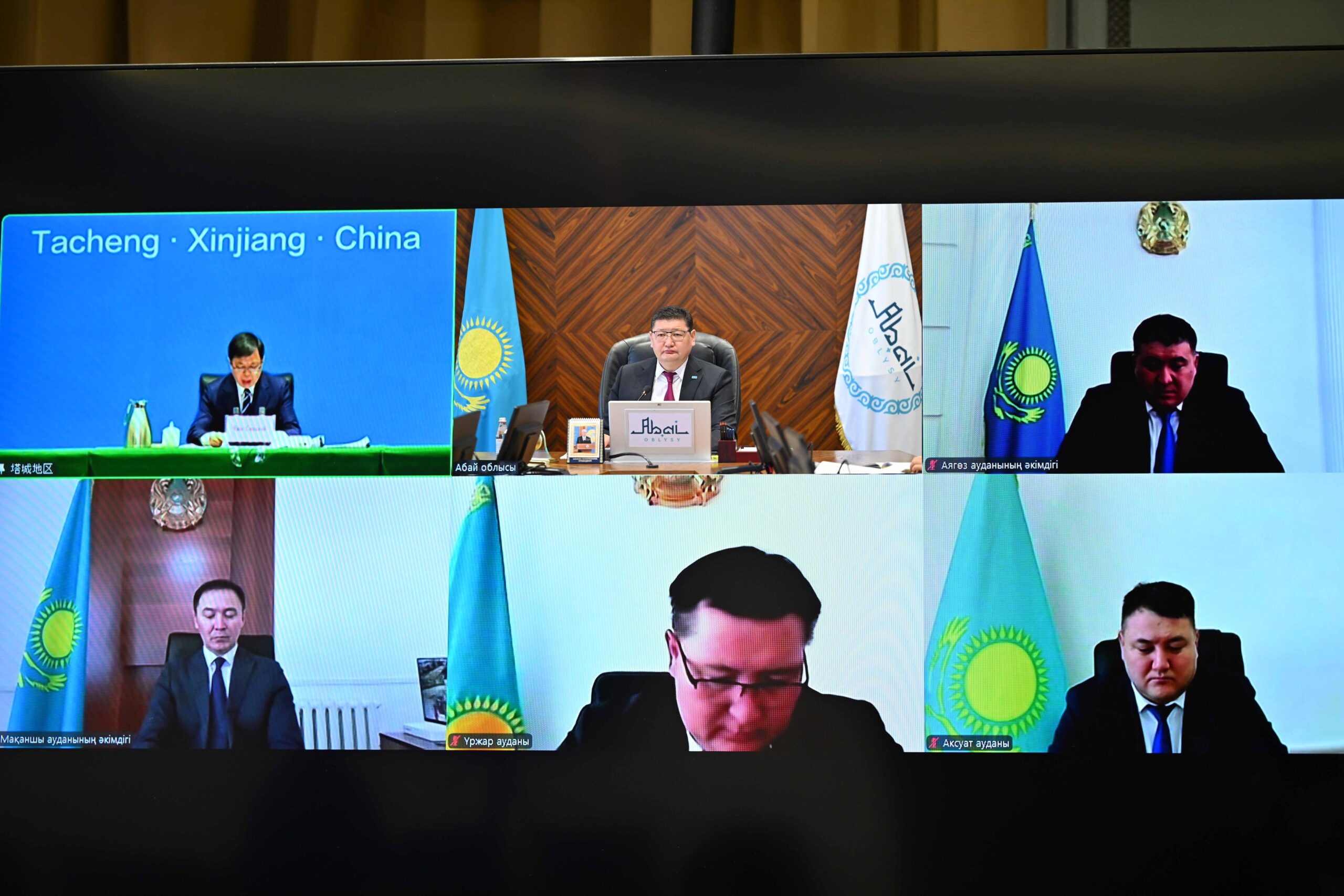 Сегодня аким области Абай Берик Уали провел видеоконференцию с секретарем партийного комитета Тарбагатайского округа Синьцзян-Уйгурского автономного района Китайской Народной Республики Чжи Сяньвэем. В совещании приняли участие руководители профильных управлений и департаментов. В режиме видеосвязи также подключились акимы приграничных районов – Аягозского, Урджарского и Аксуатского района, а также района Мақаншы.