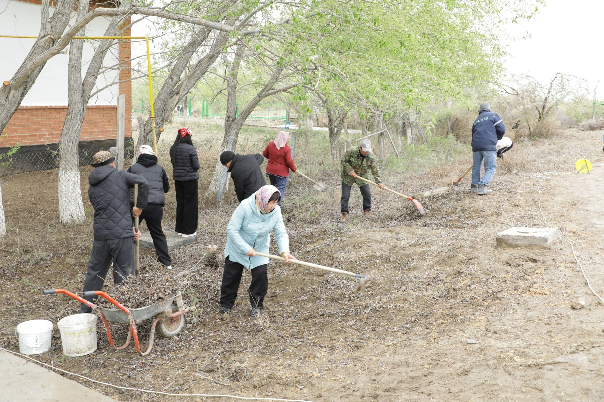 Вначале был прочитан Коран в память о предках, после чего проведены работы по очистке территории кладбища и побелке деревьев. Кроме того, аким района вместе с участниками акции принял участие в посадке саженцев на территории мавзолея Беркинбай-калпе.