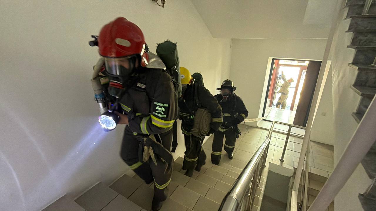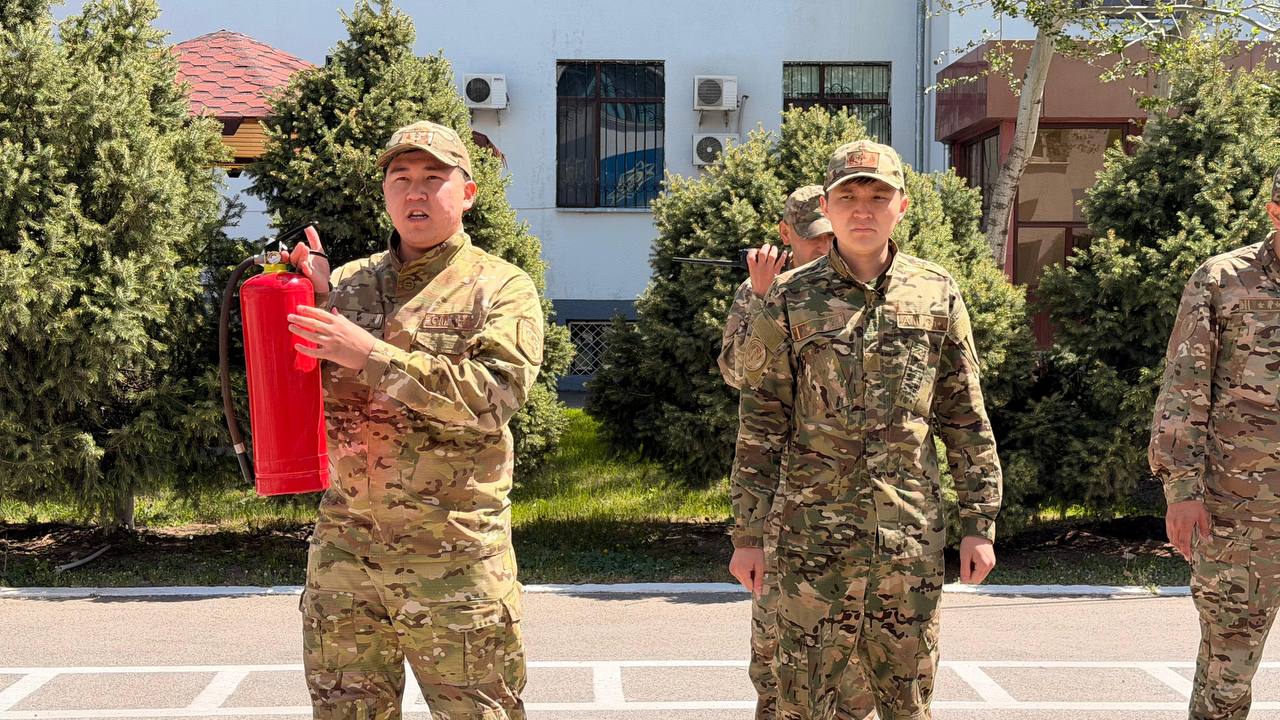 В административном здании Департамента КНБ по Жамбылской области в городе Тараз прошло пожарно-тактическое занятие. По легенде, в одном из кабинетов на втором этаже произошло короткое замыкание электропроводки, в результате чего возник пожар, охвативший площадь 50 квадратных метров. Для тушения условного пожара были привлечены 35 человек личного состава и 8 единиц техники Департамента по ЧС Жамбылской области. В ходе спасательных работ с окна третьего этажа при помощи автолестницы был эвакуирован 1 человек. Кроме того, со второго этажа звеном газодымозащитной службы были спасены 2 человека, которые переданы сотрудникам Центра медицины катастроф для оказания первой медицинской помощи. Также еще 1 человек был спасен, прыгнув из окна второго этажа на спасательное устройство. Данные занятия организованы с целью отработки оперативных действий и повышения слаженности сил и средств при чрезвычайных ситуациях.