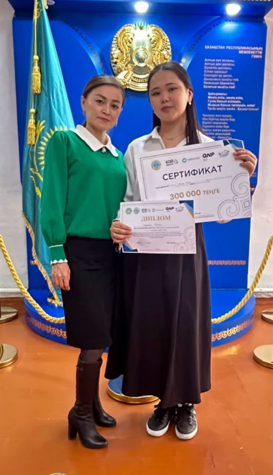 Ученица получила денежный приз в размере 300 тысяч тенге и путевку на областной этап.