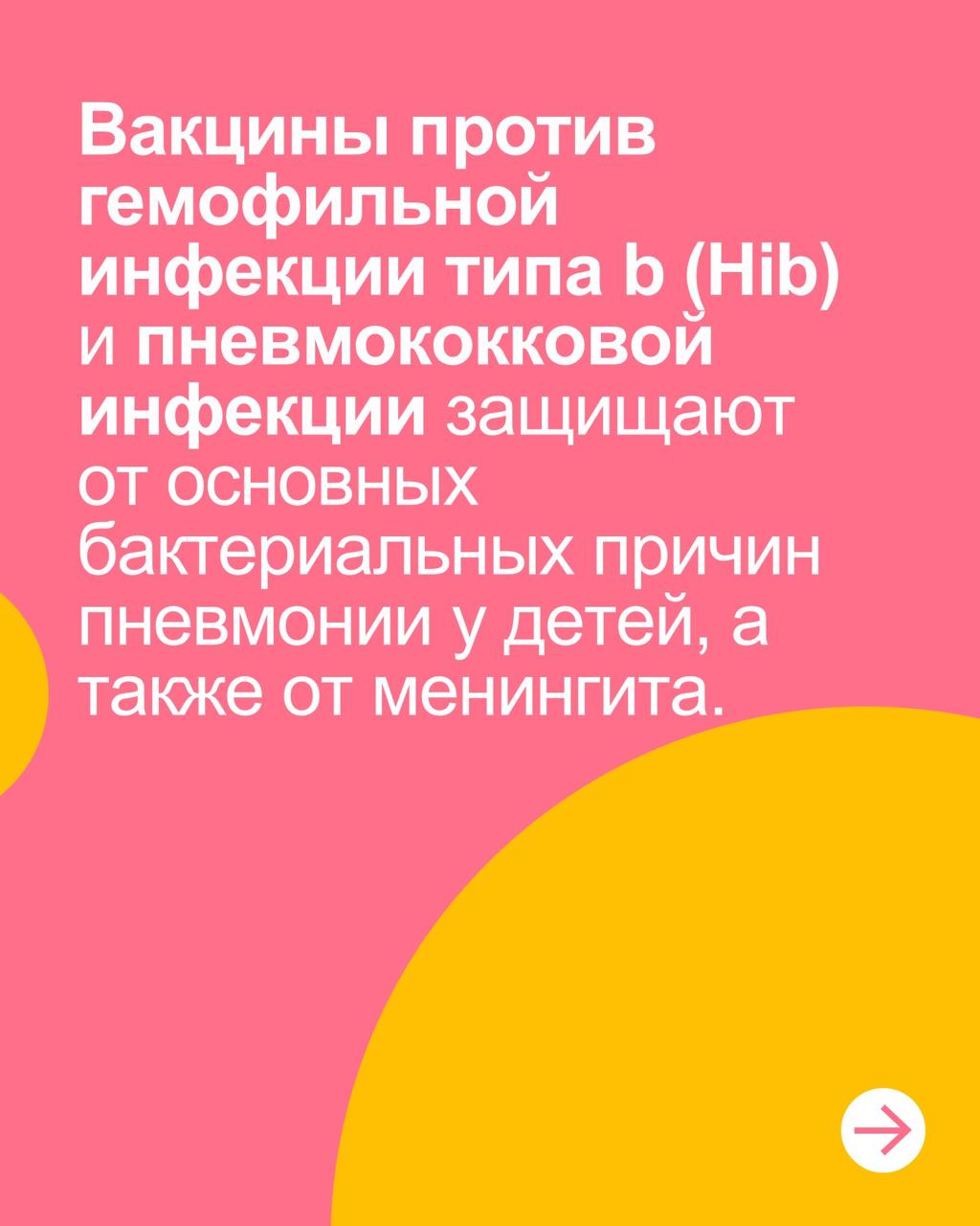 Пневмония — главная инфекционная причина смерти детей, но её можно предотвратить с помощью вакцинации. Вакцины против Hib и пневмококковой инфекции защищают от наиболее опасных причин заболевания и его тяжёлых последствий. Защитите своего ребёнка сегодня — проверьте прививочный статус и не откладывайте вакцинацию.