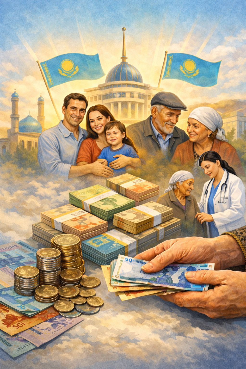 Ежемесячно на обеспечение выплат направляется порядка 21,4 млрд тенге, что подтверждает устойчивость и системность проводимой социальной политики.