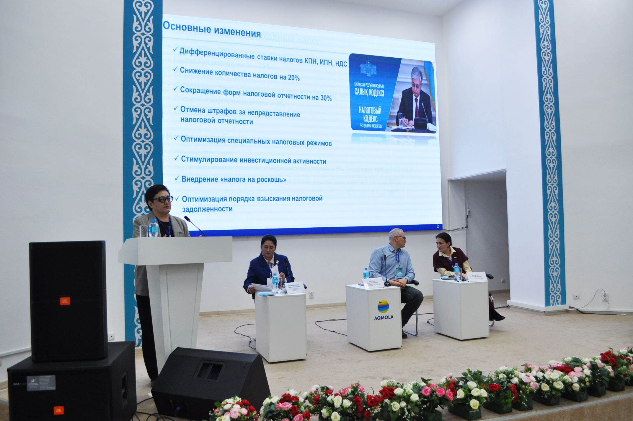Шынар Мусина – руководитель управления Департамента государственных доходов по Акмолинской области, ознакомила с основными изменениями в налоговом законодательстве в связи вступлением в силу нового Налогового кодекса, акции «Народный бухгалтер», «Чистый лист» и другими новшествами.