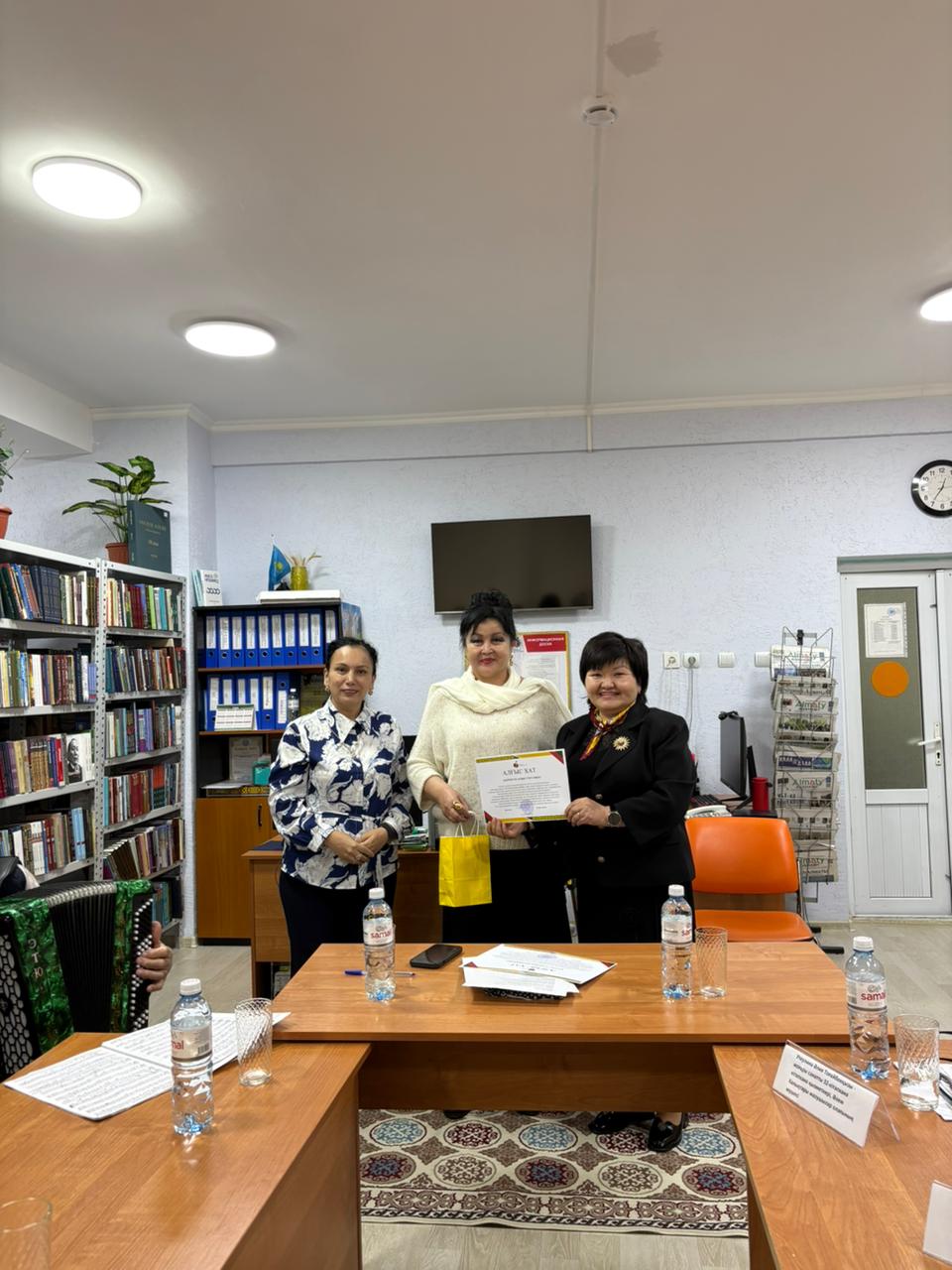 В завершение мероприятия заведующая библиотекой №45 Бақыт Нұрақынқызы выступила с заключительным словом и от имени директора Централизованной библиотечной системы города Алматы вручила гостям благодарственные письма, выразив признательность за участие.
