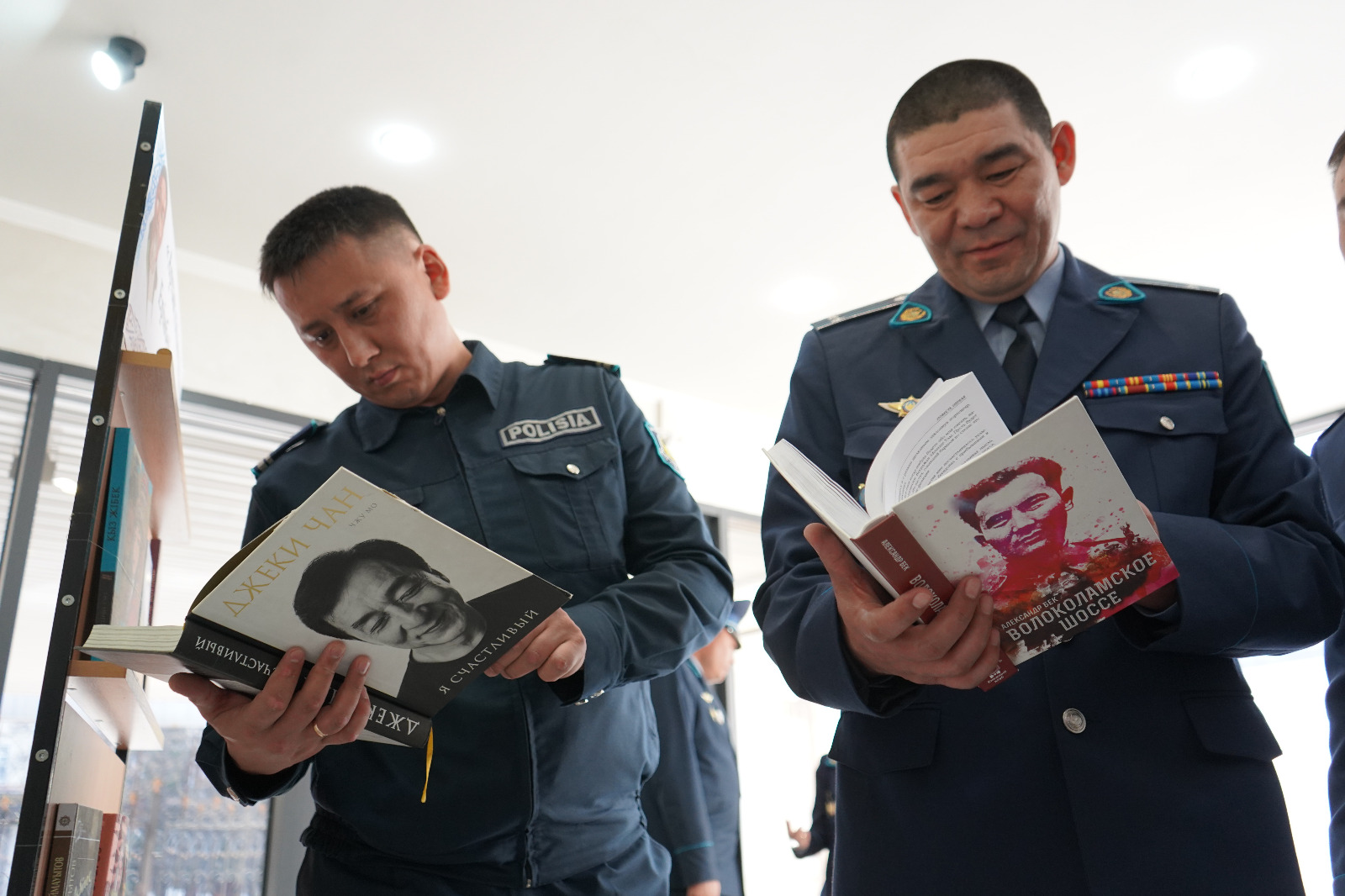 Литературные вкусы полицейских оказались такими же разнообразными, как и их служба: казахская классика, Абай, Магжан Жумабаев, исторические романы, Жюль Верн, мемуары маршала Жукова, отечественные детективы и даже биография Джеки Чана. Аналогичные мини-выставки развернуты во всех подразделениях полиции региона. Несмотря на динамичный ритм службы, сотрудники выбирают минуты и с интересом листают книги, берут их домой и приносят свои.