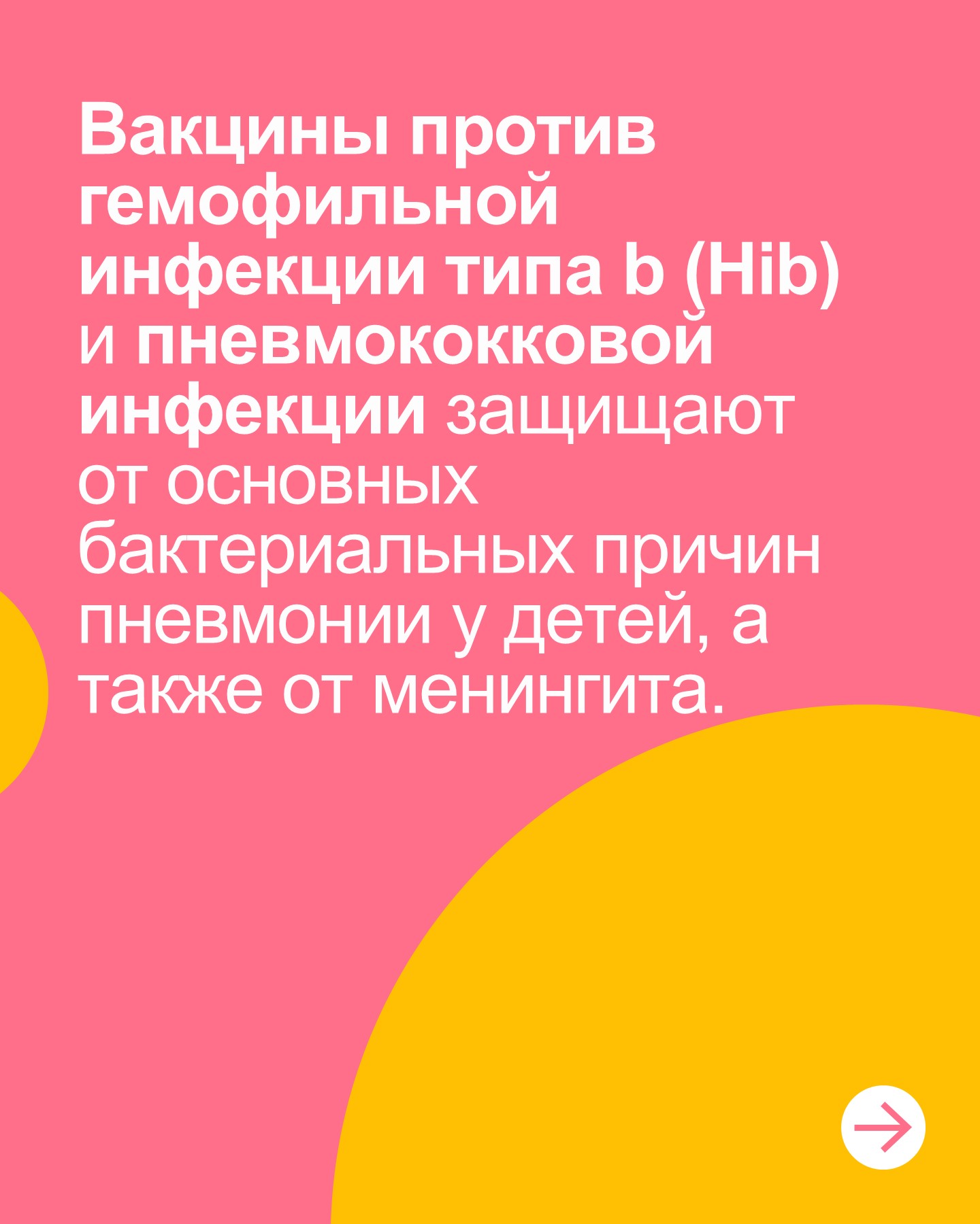 Пневмония — главная инфекционная причина смерти детей, но её можно предотвратить с помощью вакцинации. Вакцины против Hib и пневмококковой инфекции защищают от наиболее опасных причин заболевания и его тяжёлых последствий.
