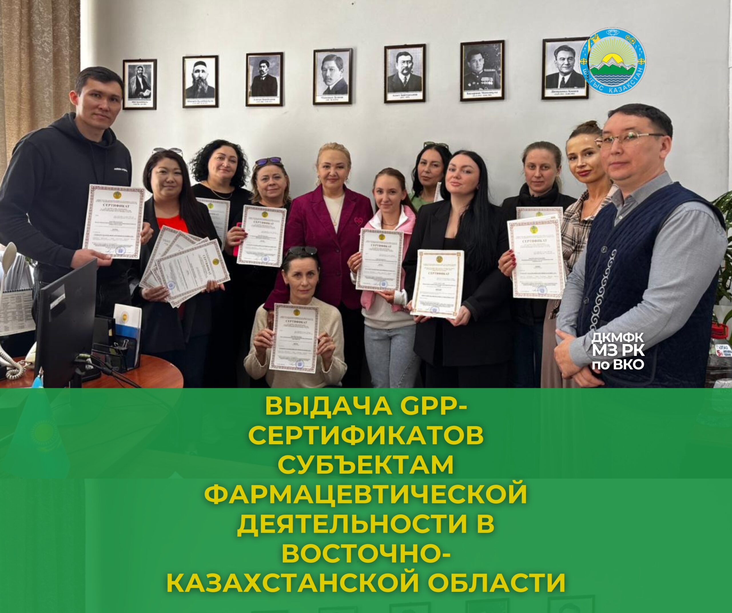 Руководителем Департамента Комитета медицинского и фармацевтического контроля МЗ РК по ВКО Выданы сертификаты GPP следующим субъектам: