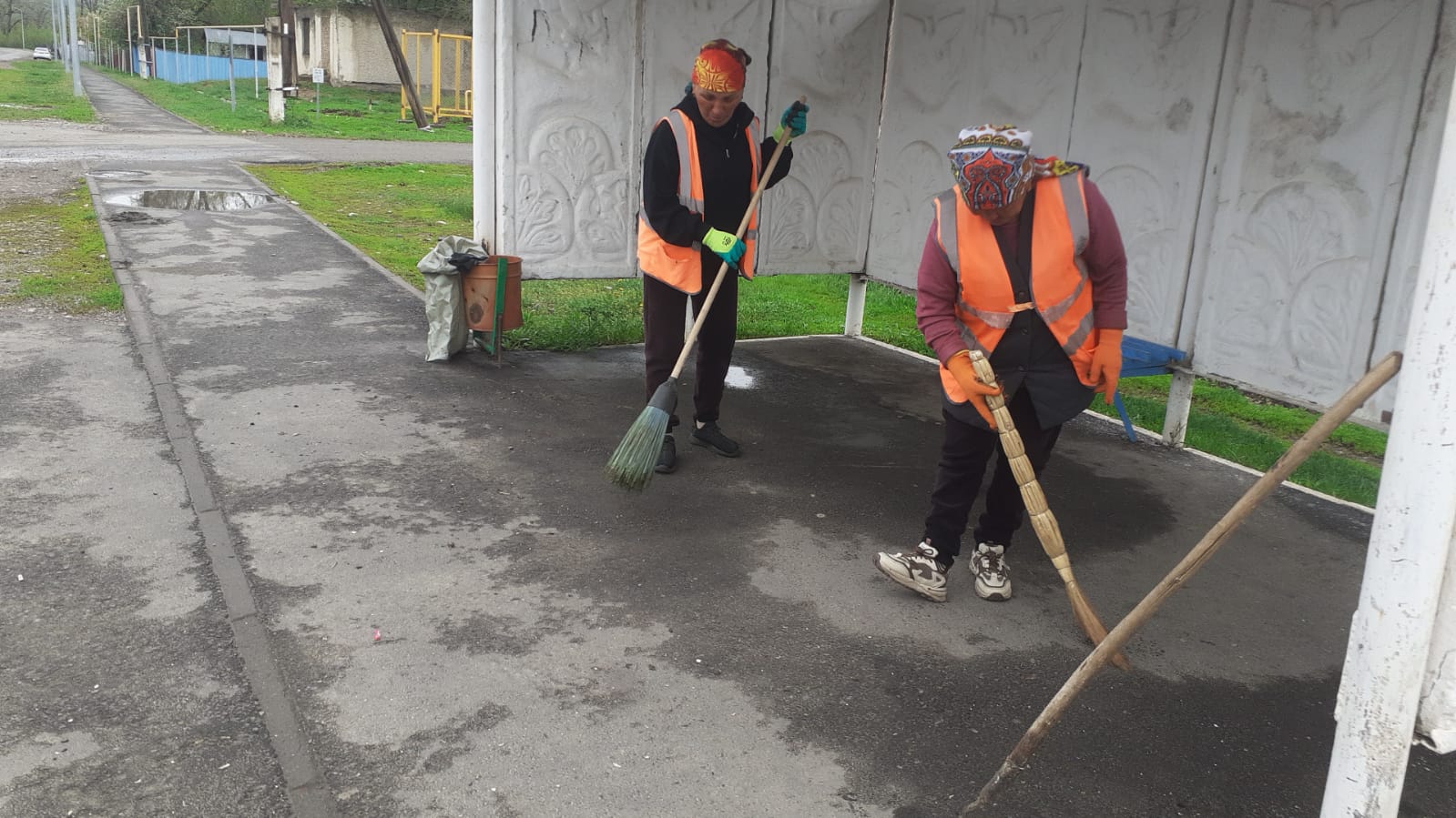 Общественными работниками кокжазыкского сельского округа на субботнике” Чистый Четверг ” убирают общественные места и обочины