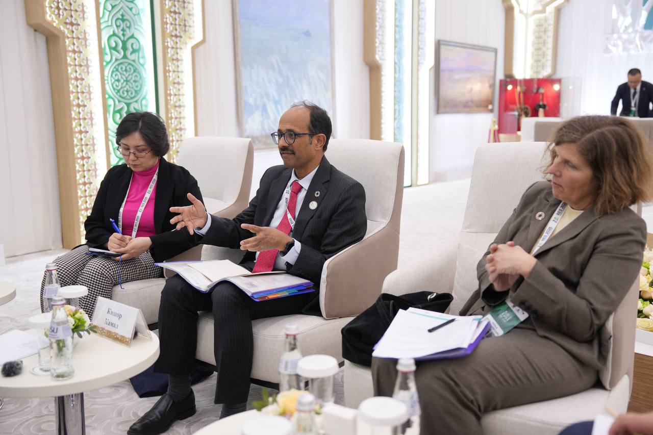 В рамках Регионального экологического саммита Министр водных ресурсов и ирригации Нуржан Нуржигитов провел встречу со Специальным представителем Генерального секретаря ООН по вопросам снижения риска бедствий и Главой Управления ООН по снижению риска бедствий Камалом Кишором. Также во встрече приняла участие заместитель председателя Комитета по регулированию, охране и использованию водных ресурсов Имашева Гүлмира Сағынбайқызы.