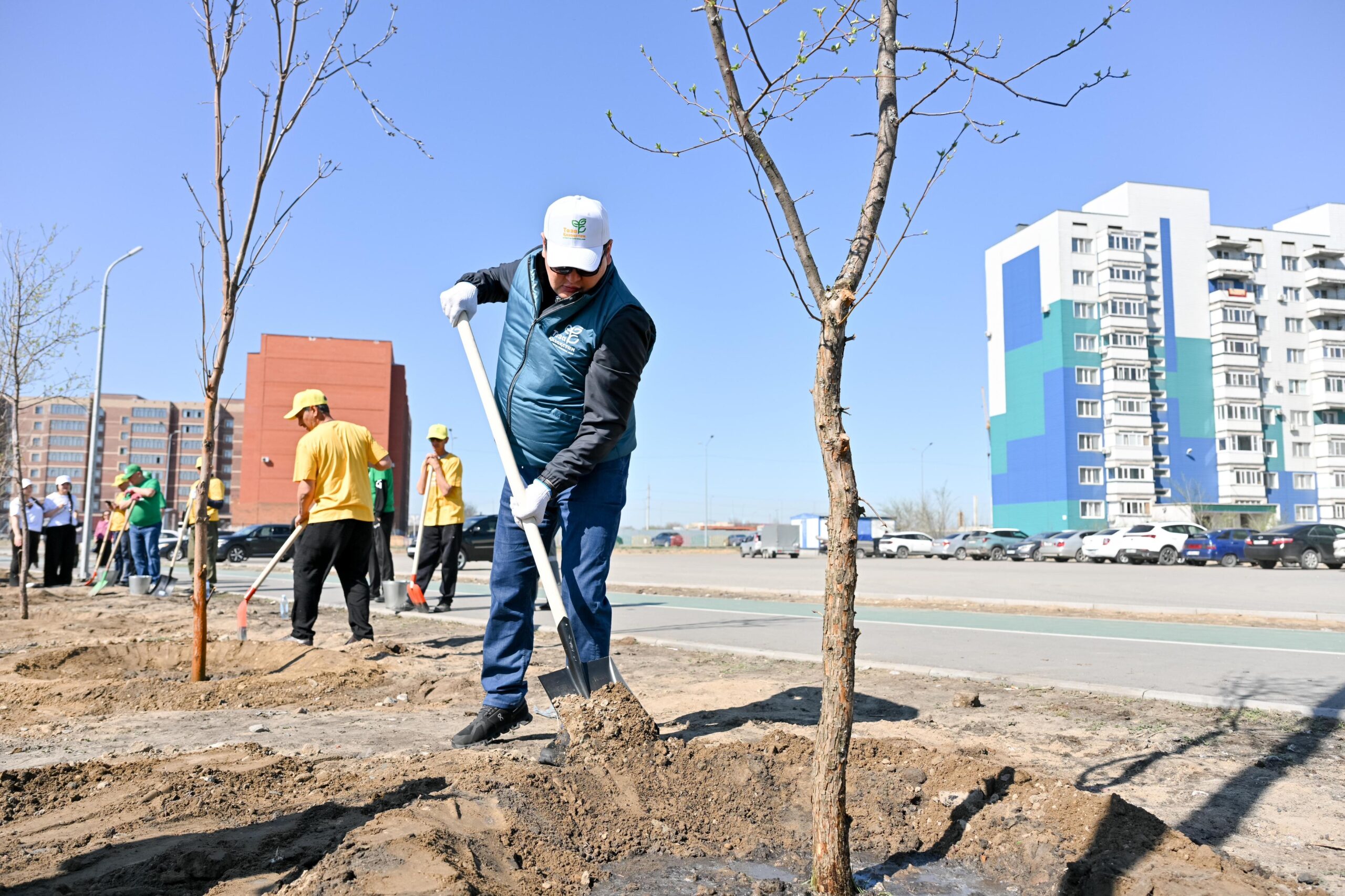 В рамках программы «Таза Қазақстан» после телемоста с участием Президента Касым-Жомарта Токаева аким области Берик Уали вместе с жителями города и молодежью принял участие в посадке деревьев в микрорайоне Карагайлы.