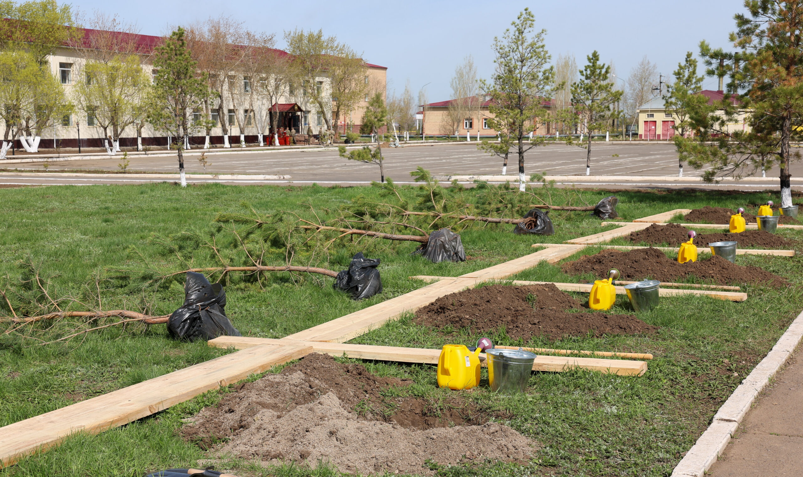 Вооружившись шанцевым инструментом и другим уборочным инвентарем, военнослужащие департаментов и управлений оборонного ведомства очистили участок дороги по Акмешит в пределах улиц Сыганак и Керей-Жанибек ханов. Параллельно были проведены работы по уборке территорий вокруг административных зданий Министерства обороны, Сухопутных войск, Сил воздушной обороны и Военно-морских сил.