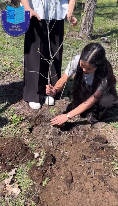 Бүгін 1 және 11 сынып оқушылары бірлесіп, мектеп ауласына ағаш көшеттерін отырғызды 🌳