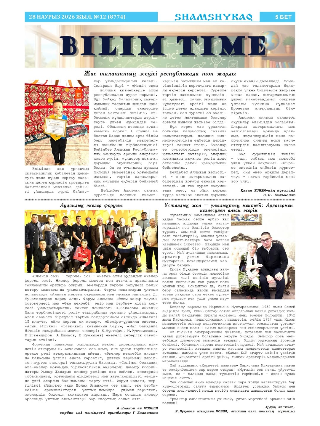“Шамшырақ” газетінің бүгінгі санында білім саласына қатысты қызықты әрі мазмұнды жаңалықтар легі ұсынылады: