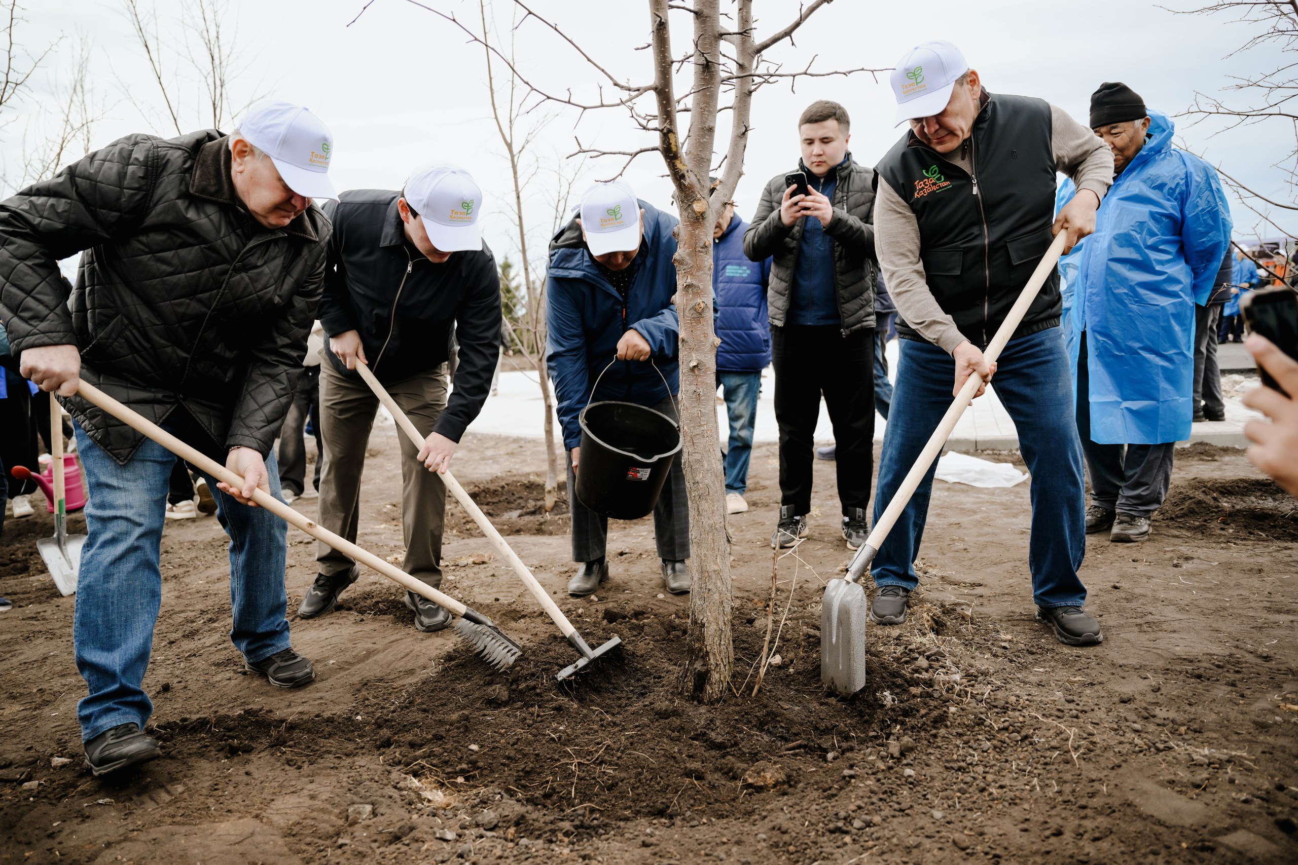 В Петропавловске депутаты, руководство области, ветераны, молодежные организации, общественные активисты и неравнодушные горожане приняли участие в массовой посадке деревьев на озере Пестрое, где строится экопарк.