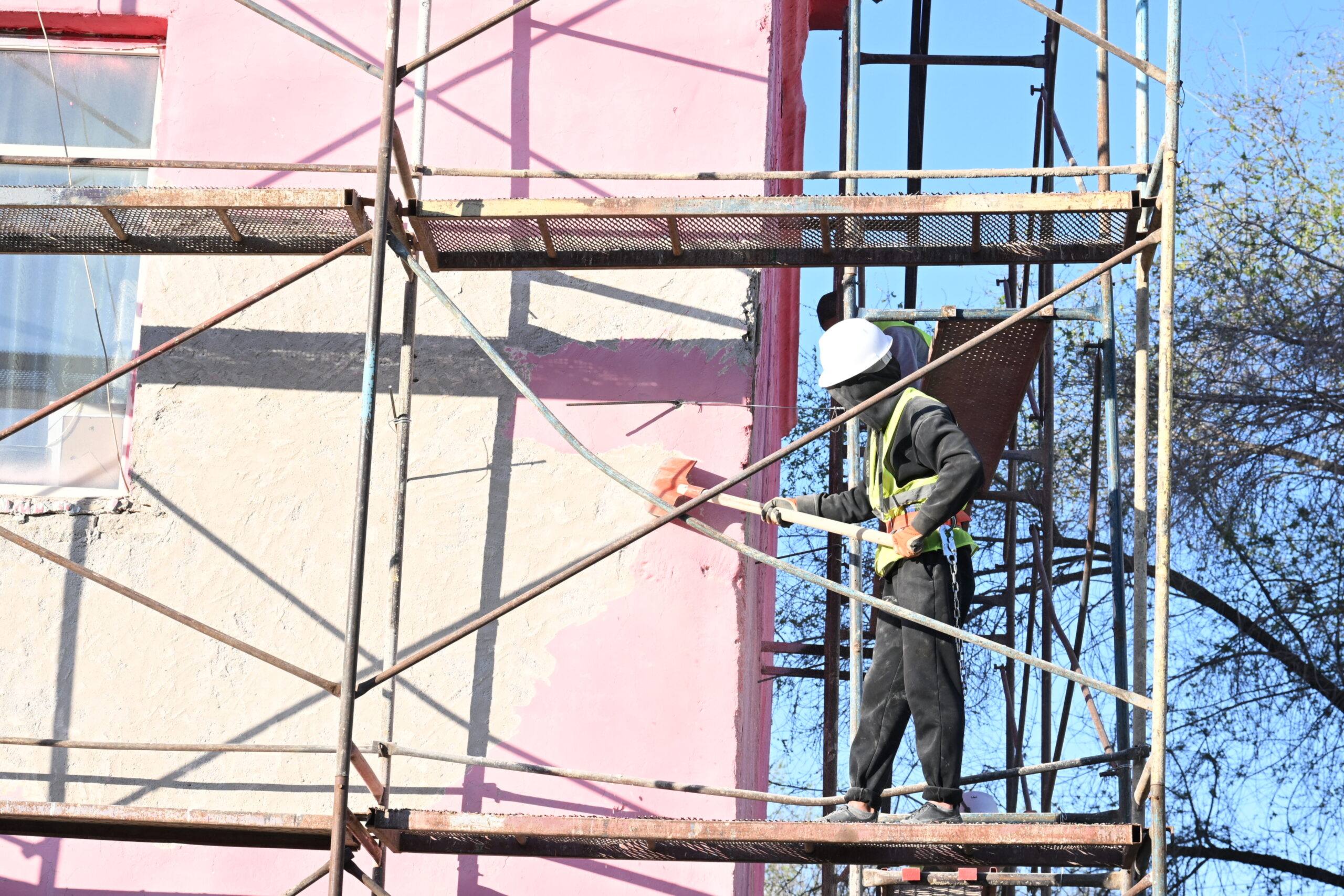 Начальник стройучастка Нурбол Беккаримов пояснил, что проект предусматривает не только обновление внешнего облика, но и укрепление конструкций зданий.