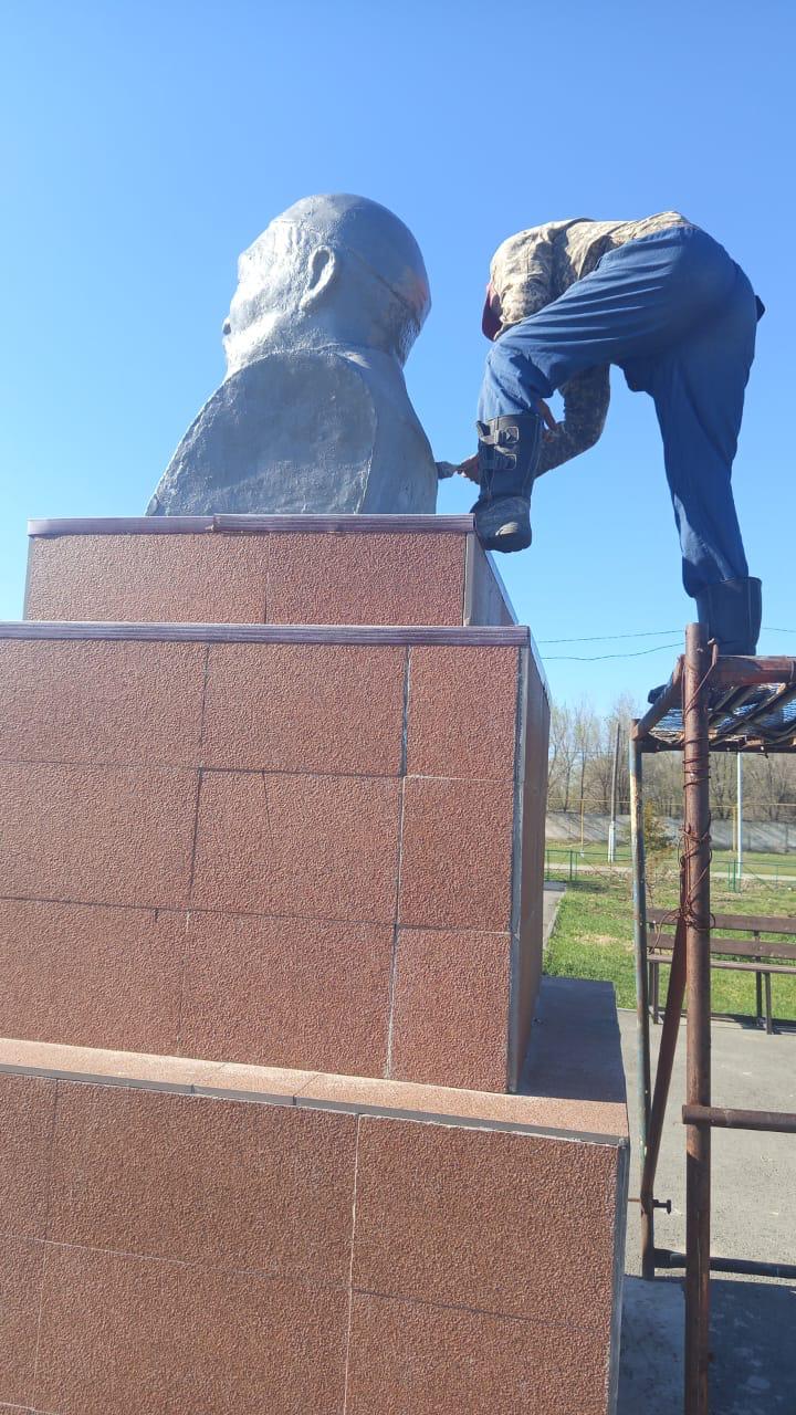 В селе Каражиде проведены работы по очистке и побелке памятника Абаю Кунанбаеву