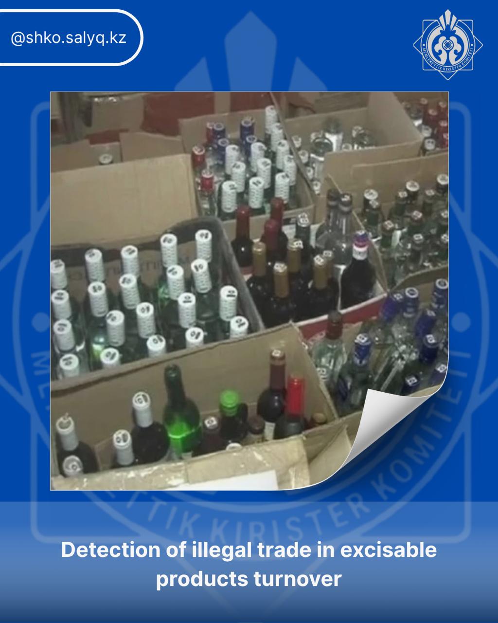 Алкогольная продукция:21,4 тыс. литров на сумму 164,2 млн. тенге (включая факты торговли без лицензии).