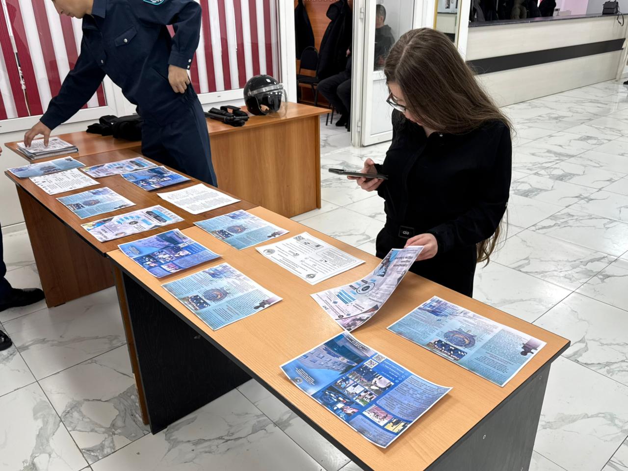 Перед ребятами выступили помощник участкового инспектора полиции Акыл Байтенизов, награждённый государственной наградой «Ерлігі үшін» за спасение людей во время паводка, и криминалист Назар Коваленко — один из лучших выпускников Карагандинской академии МВД РК им. Б. Бейсенова 2025 года.