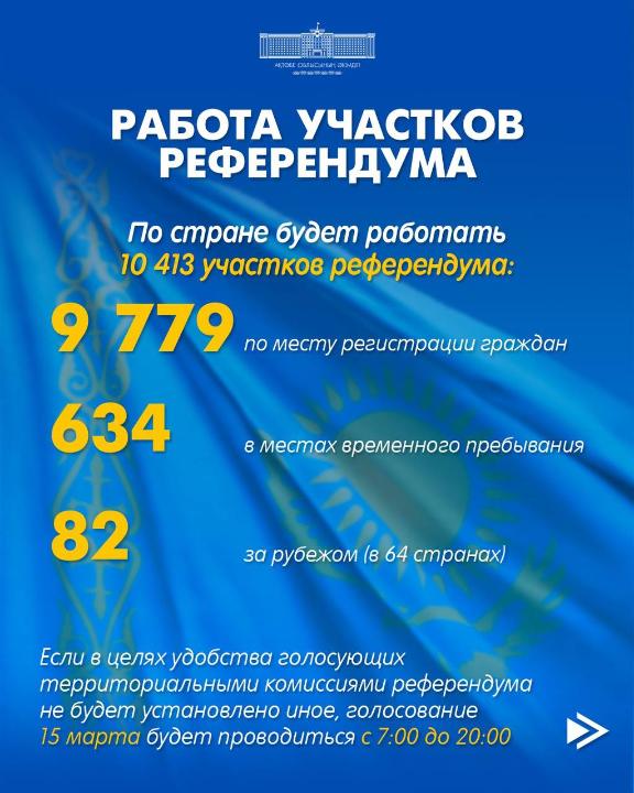 В Казахстане 15 марта состоится республиканский референдум по проекту новой Конституции Республики Казахстан.